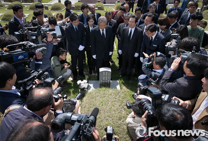 (광주=포커스뉴스) 김종인 더불어민주당 비대위 대표와 20대 총선 당선인 및 광주·전남지역 낙선 인사들이 25일 오전 광주 북구 국립 5·18민주묘지를 방문해 민주열사 묘역을 둘러보고 있다.