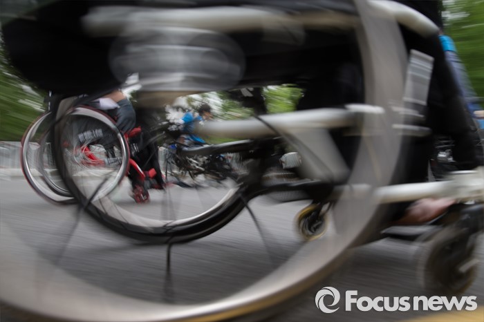 (서울=포커스뉴스) 30일 오전 서울 송파구 잠실종합운동장 인근에서 열린 '제24회 서울국제휠체어마라톤대회'에서 참가자들이 힘차게 출발하고 있다.