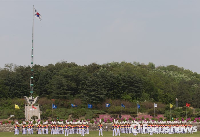 (서울=포커스뉴스) 29일 오후 서울 노원구 육군사관학교에서 열린 개교 70주년 기념식에서 생도들이 도열하고 있다.