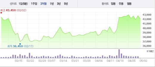 YG엔터테인먼트는 2일 오전 9시7분 현재 전일 대비 1.87%(800원) 하락한 4만2000원에 거래되고 있다. YG엔터의 자회사인 YG 플러스도 2.42%(75원) 떨어진 3070원에 거래 중이다.
