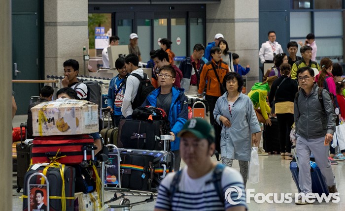 (영종도=포커스뉴스) 중국 노동절 연휴와 일본 골든 위크를 맞아 1일 외국인 관광객들이 인천국제공항을 통해 입국하고 있다.
