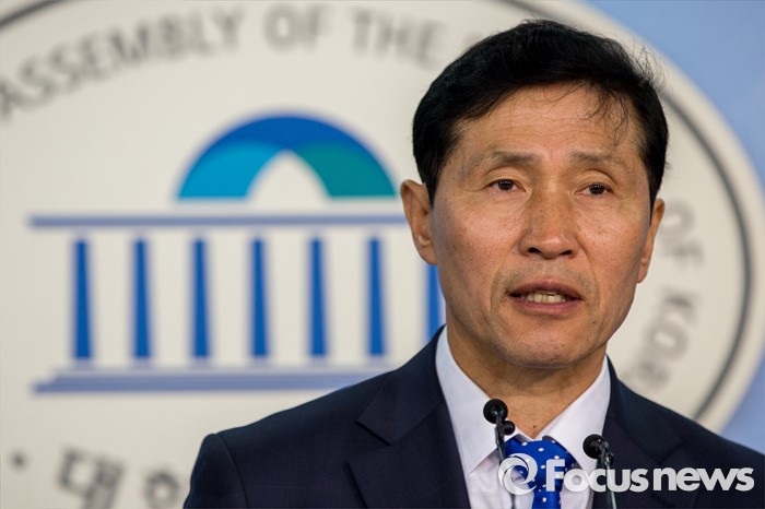 (서울=포커스뉴스) 이학영 더불어민주당 의원이 2일 오전 서울 여의도 국회에서 테러방지법 시행 관련 기자회견을 하고 있다.
