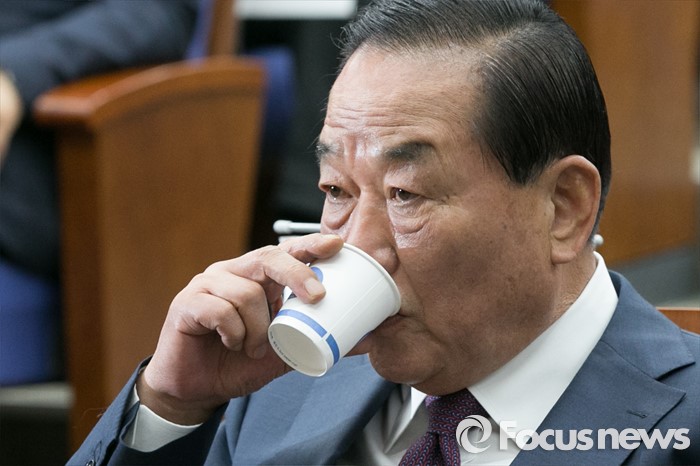 그는 새누리당의 총선 참패에 대해 "전에는 이 자리가 꽉 찼었는데 빈 자리가 많아 쓸쓸하다. 저도 이런 쓸쓸함의 원인 제공자 중 한사람"이라며 "반성한다. 국민께 사과드린다. 죄송하다"고 밝혔다.서청원 새누리당 의원이 26일 오전 서울 여의도 국회에서 열린 당선자 워크숍에 참석해, 물을 마시고 있다. 2016.04.26 박철중 기자