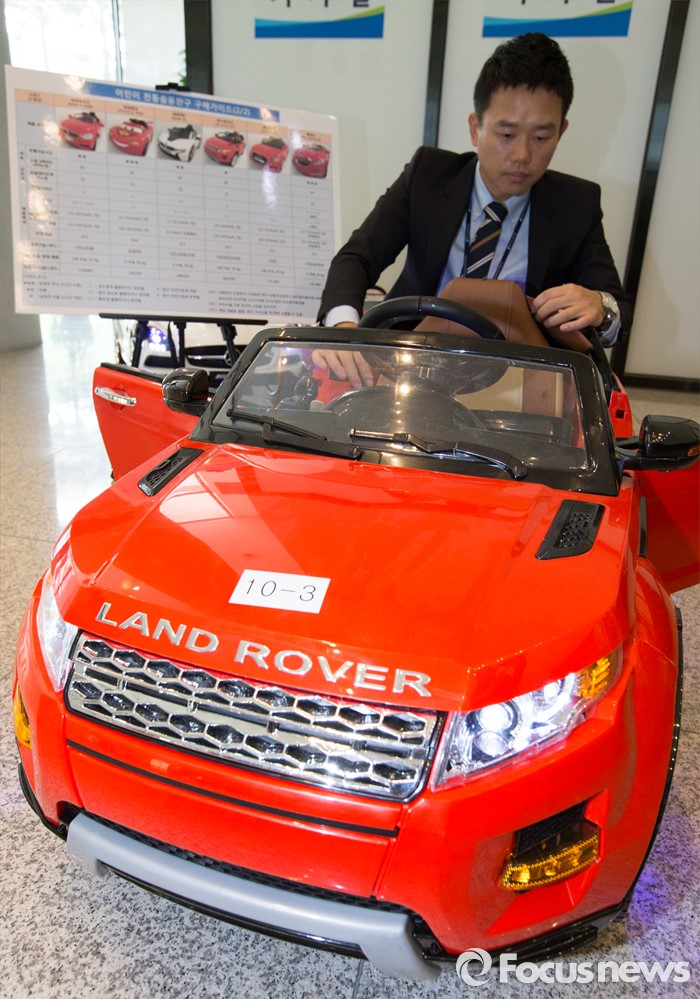 (세종=포커스뉴스) 2일 오전 세종시 정부세종청사 공정거래위원회에서 한국소비자원 관계자가 어린이 전동 승용완구 성능 및 안전성 등 제품별 차이를 설명하고 있다.
