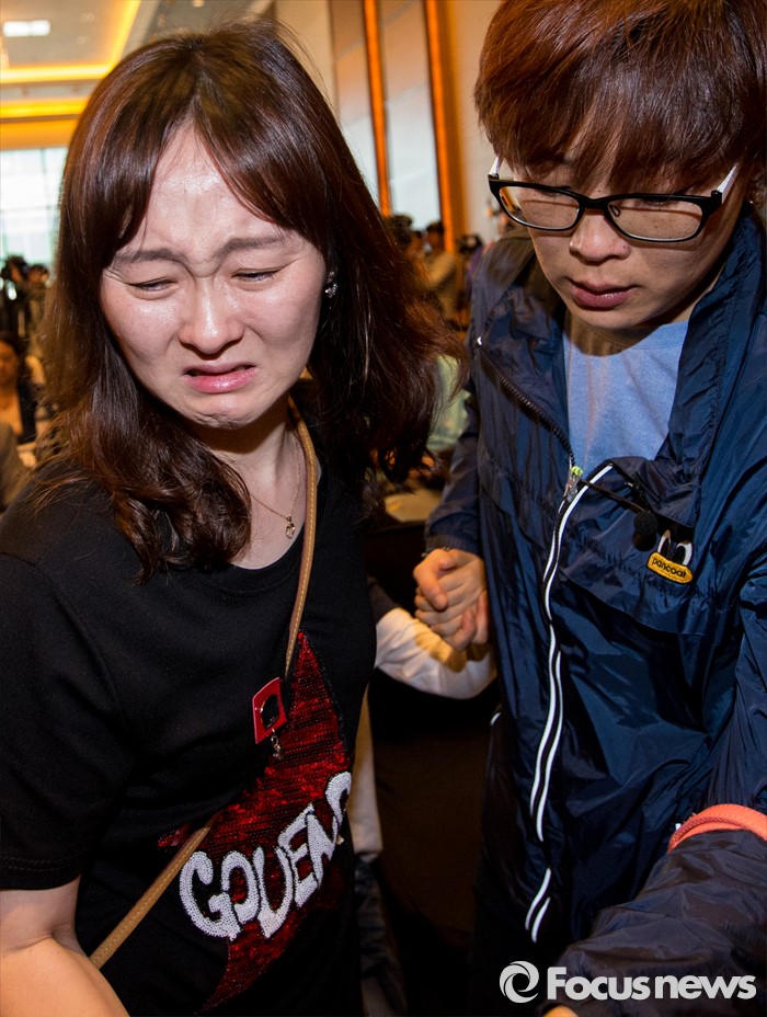 (서울=포커스뉴스) 2일 오전 서울 영등포구 콘래드호텔에서 열린 '옥시레킷벤키저(현 RB코리아) 가습기 살균제 파동' 관련 기자회견에서 피해자 가족들이 오열하고 있다.