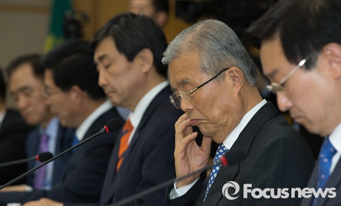 (대전=포커스뉴스) 김종인 더불어민주당 비대위 대표와 이종걸 원내대표를 비롯한 더민주 의원 및 당직자들이 28일 오후 대전시청을 방문한 가운데 대회의실에서 열린 더불어민주당-대전시 정책간담회에서 김종인 대표가 얼굴을 만지며 잠시 생각에 잠긴 모습을 보이고 있다.