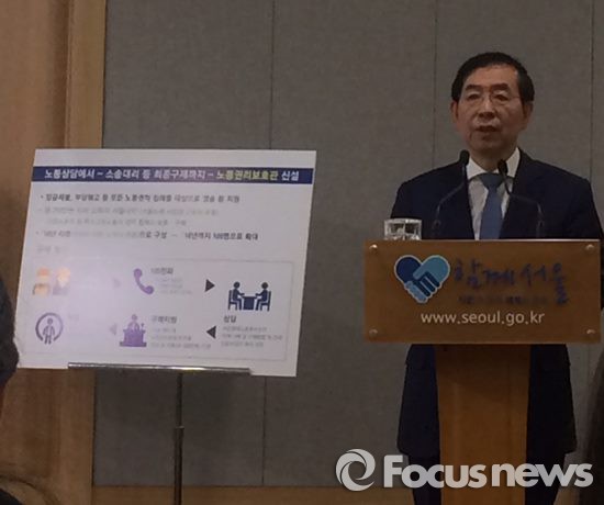 박 시장은 기자설명회에서 △침해예방부터 구제까지 원스톱 해결 △노동사각지대 해소 △생활임금확대 △비정규직 정규직화 △노동시간 단축 △근로자이사제 △노동정책네트워크 구축 등 7가지를 약속했다.