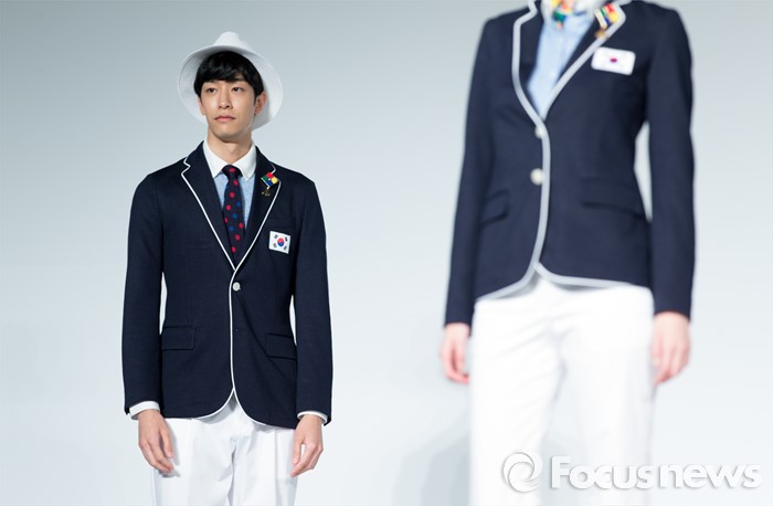 (서울=포커스뉴스) 27일 오후 서울 노원구 태릉선수촌에서 열린 제31회 리우하계올림픽대회 D-100일 미디어데이에서 선수와 모델들이 리우올림픽 국가대표 선수단 단복을 선보이고 있다.