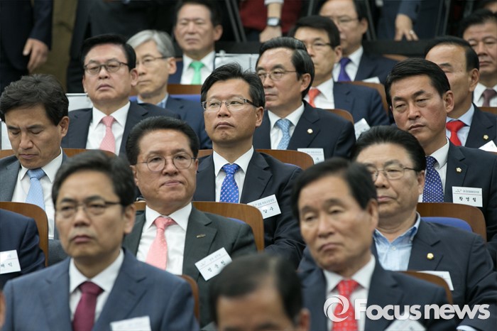 (서울=포커스뉴스) 제20대 총선 새누리당 당선자들이 26일 오전 서울 여의도 국회에서 열린 당선자 워크숍에 참석해, 원유철 원내대표의 인사말을 경청하고 있다.