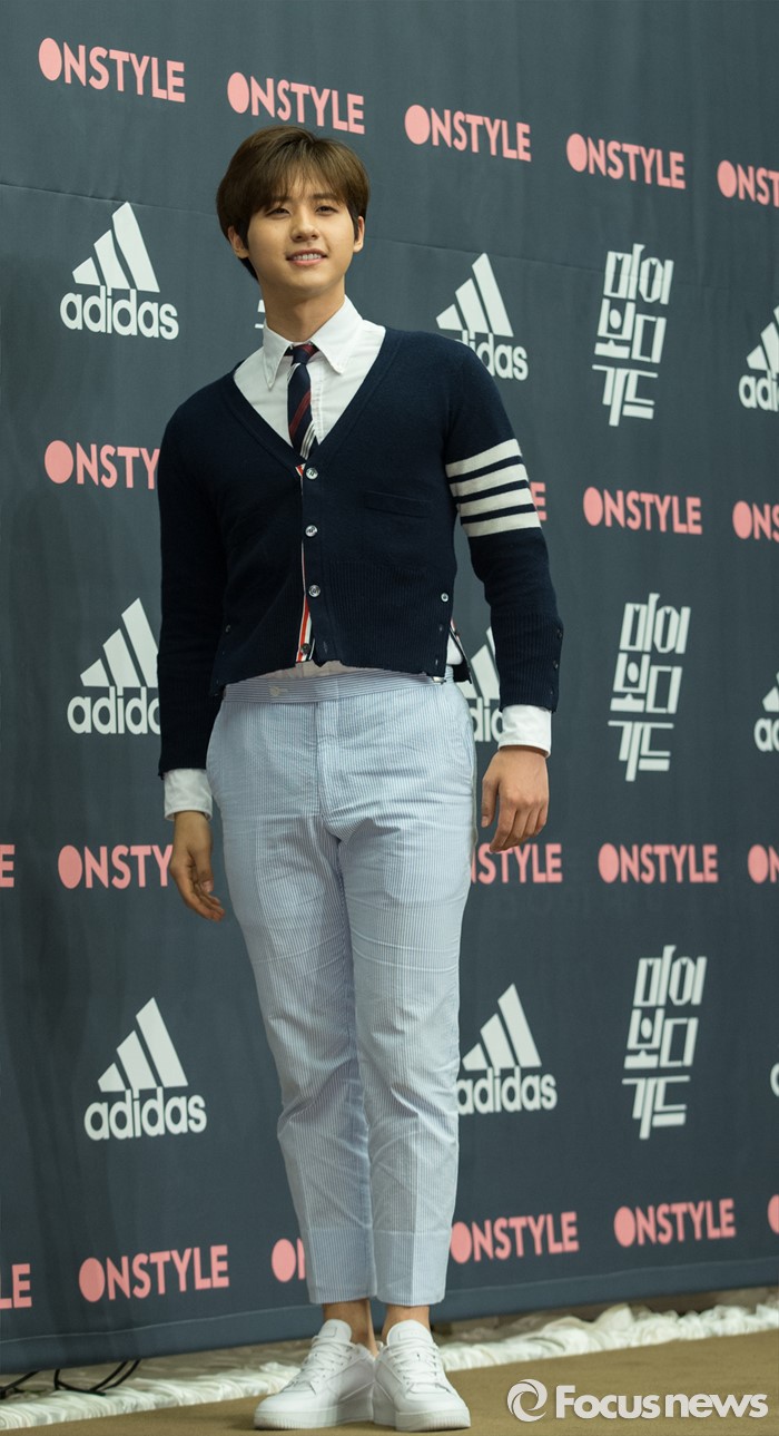 (서울=포커스뉴스) 26일 오전 서울 마포구 스탠포드 호텔에서 열린 온스타일 '마이 보디가드' 제작발표회에 참석한 가수 신우가 포토타임을 갖고 있다.