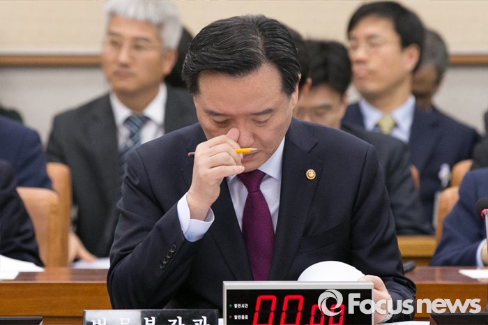 (서울=포커스뉴스) 김현웅 법무부 장관이 28일 오후 서울 여의도 국회에서 열린 법제사법위원회 전체회의에 출석해, 생각에 잠겨 있다.