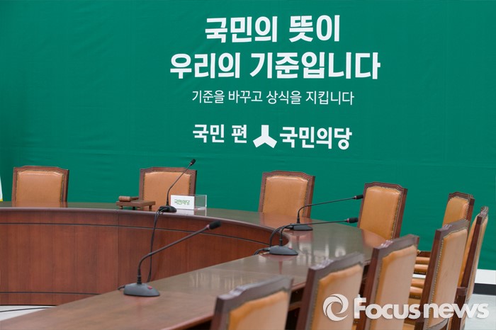 (서울=포커스뉴스) 25일 오전 서울 여의도 국회본청에 새롭게 자리한 국민의당 회의실이 본격적인 회의를 위해 준비된 모습을 하고 있다.