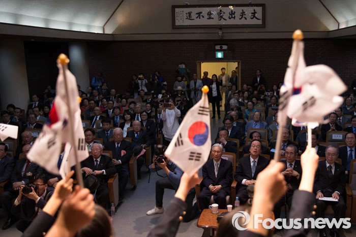 (서울=포커스뉴스) 윤봉길 의사의 상하이 의거 84주년을 맞아 29일 오전 서울 서초구 매헌기념관에서 열린 기념식에 참석한 어린이 합창단이 태극기를 흔들고 있다.
