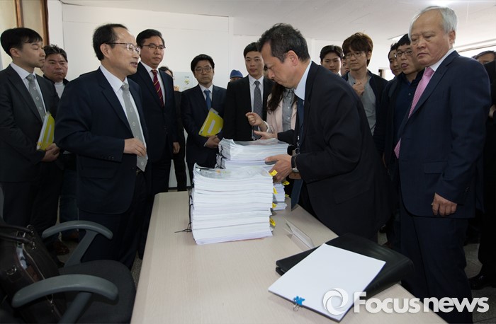 (부여=포커스뉴스) 29일 오후 이완구 전 국무총리가 2013년 재보궐 선거 때 사용한 충남 부여 선거사무소에서 서울고법 형사2부 관계자들이 현장검증을 실시하고 있다.