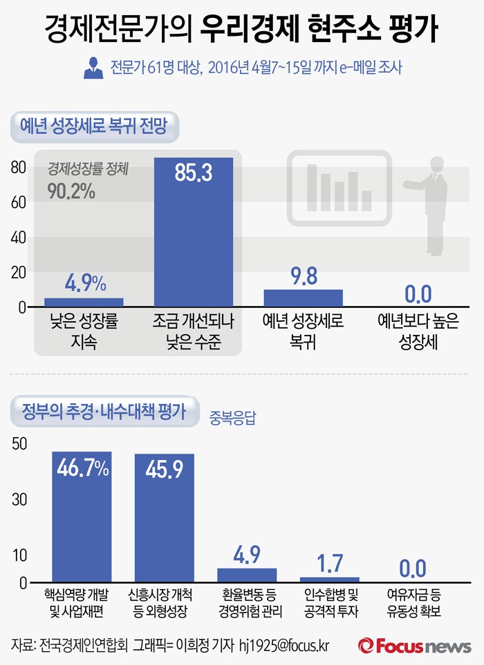 (서울=포커스뉴스) 25일 전국경제인연합회가 '우리경제 현주소 평가 및 대책'을 조사한 결과에 따르면 우리경제는 예년의 성장세 복귀가 어렵다는 평가가 90.2%로 지배적이었다. 정부의 추경 또는 내수활성화 정책 성격을 묻는 질문에는 10명중 9명은 ’임시방편적‘ 또는 ’단편적‘이라고 답했다.