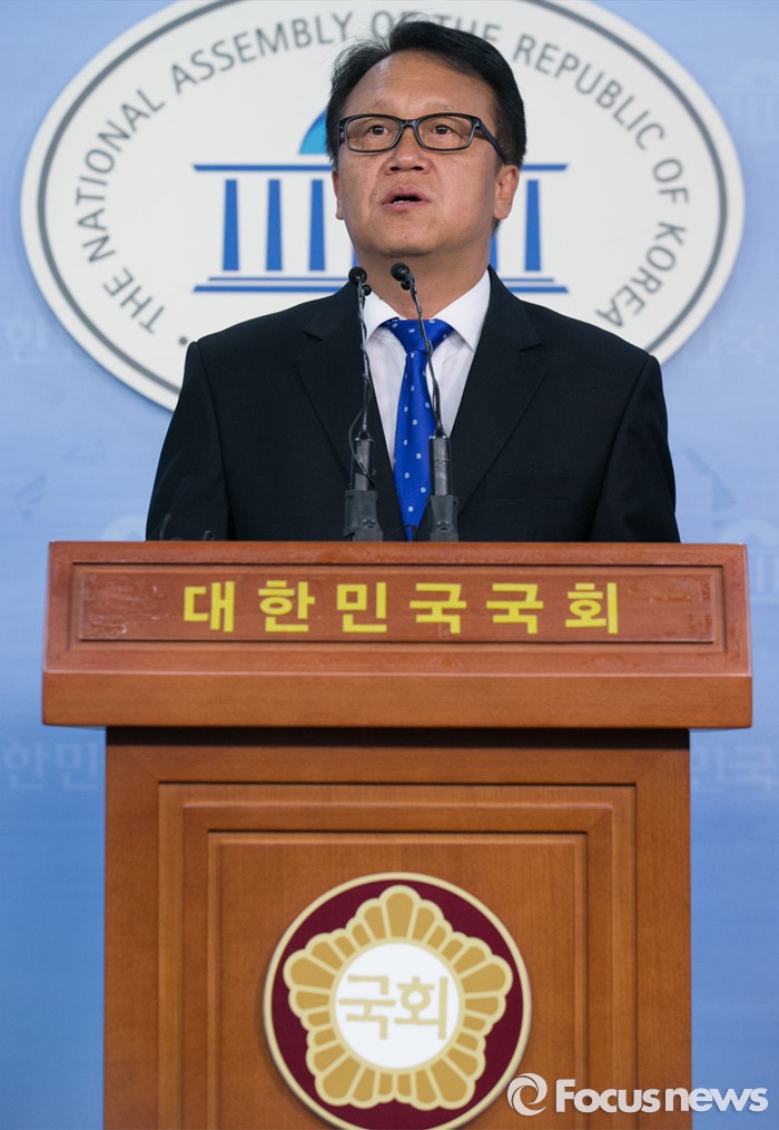 (서울=포커스뉴스) 민병두 더불어민주당 의원이 29일 오후 서울 여의도 국회 정론관에서 원내대표 출마 기자회견을 하고 있다.
