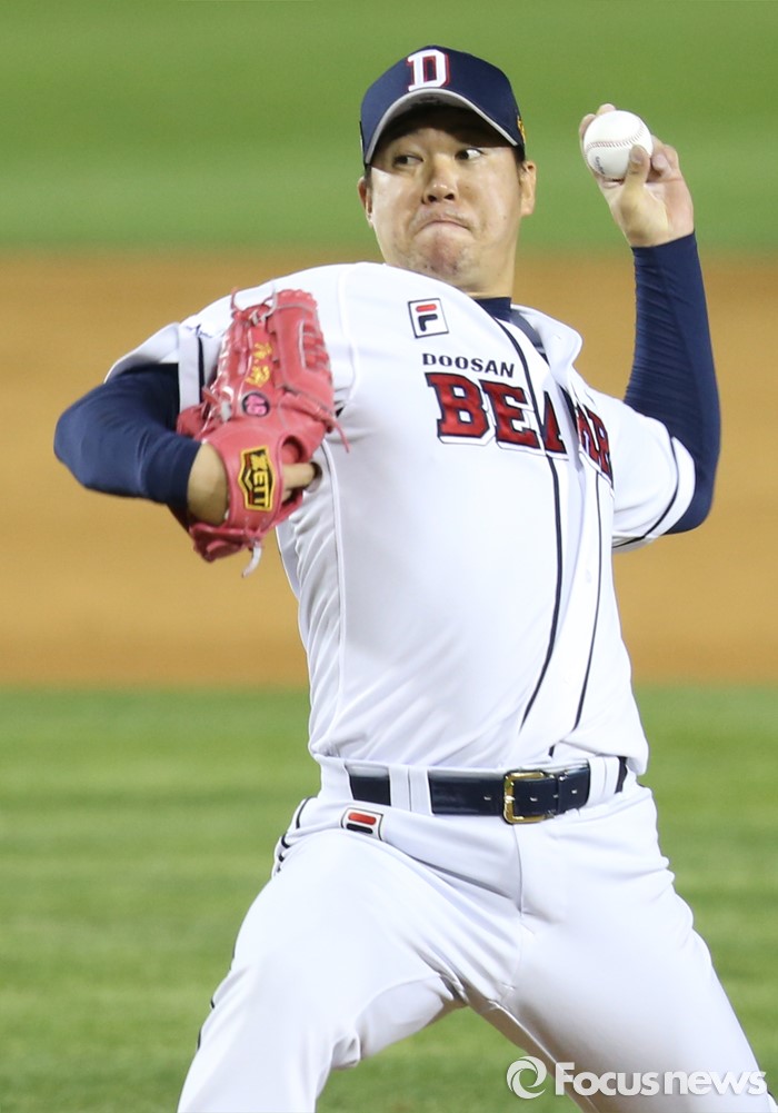(서울=포커스뉴스) 28일 서울 잠실구장에서 열린 2016 프로야구 SK-두산 경기에서 두산 마무리 투수 이현승이 9회 2사후 마운드에 올라 투구하고 있다.