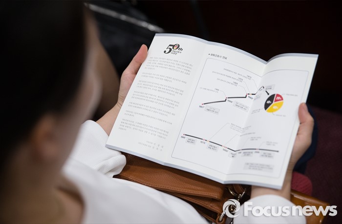 (서울=포커스뉴스)2일 오후 서울 국회 의원회관에서 열린 간호사 파독 50주년 기념행사에서 한 참석자 파독 간호사 연표를 보고 있다.