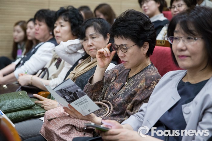 (서울=포커스뉴스)2일 오후 서울 국회 의원회관에서 열린 간호사 파독 50주년 기념행사에서 한 참석자 파독 간호사 연표를 보고 있다.