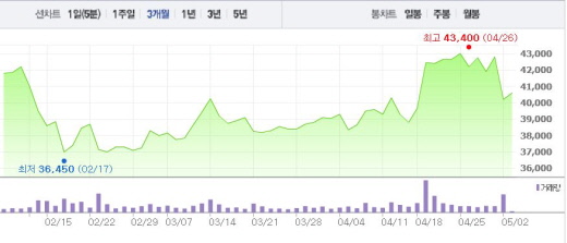YG엔터테인먼트는 빅뱅, 2NE1(투애니원) 등이 소속된 회사다. 양현석 대표는 YG 상장 주식의 23.38%(382만 903주)를 보유하고 있다.YG엔터테인먼트 주가흐름<사진출처=네이버 캡쳐>