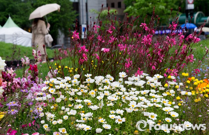 (서울=포커스뉴스) 전국이 흐리고 비가 내리는 3일 오전 서울 청계광장에서 시민들이 발걸음을 재촉하고 있다.
