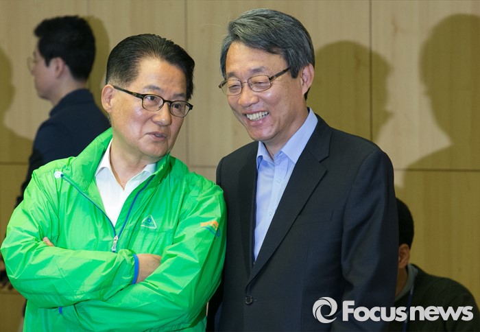 (서울=포커스뉴스) 박지원(왼쪽) 국민의당 원내대표가 3일 오전 서울 여의도 국회 의원회관에서 열린 정책역량 강화 집중워크샵에 참석해 김성식 정책위의장과 대화하고 있다.