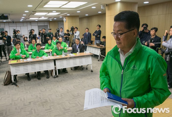 (서울=포커스뉴스) 박지원(오른쪽) 국민의당 원내대표가 3일 오전 서울 여의도 국회 의원회관에서 열린 정책역량 강화 집중워크샵에 참석해 20대 국회 초선 당선인 대상 특강을 위해 단상으로 향하고 있다.