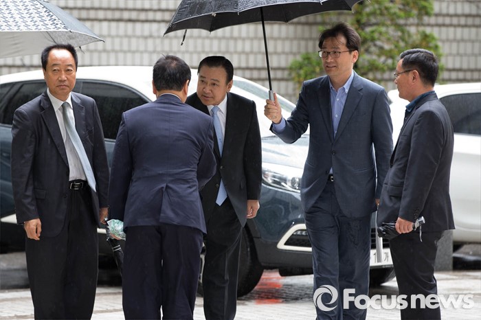 (서울=포커스뉴스) 정치자금법 위반 혐의를 받고 있는 '성완종 리스트' 이완구(가운데) 전 국무총리가 항소심 2차 공판에 출석하기 위해 3일 오전 서울 서초구 고등법원으로 향하고 있다.