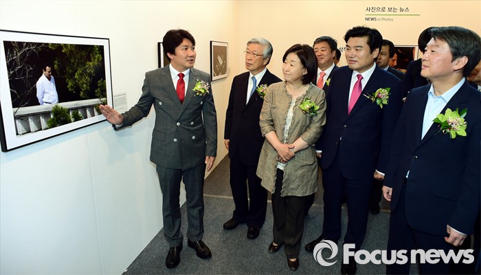 (서울=포커스뉴스) 3일 오전 서울 강남구 코엑스에서 열린 '52회 한국보도사진전 개막식'에 참석한 안철수(오른쪽부터) 국민의당 상임공동대표, 원유철 새누리당 대표최고위원 권한대행, 심상정 정의당 상임대표 등 인사들이 이동희 한국사진기자협회장의 안내를 받으며 전시된 사진을 관람하고 있다. '찰나의 기록, 시대의 진실'을 주제로 진행된 이번 전시는 시대의 진실을 기록한다는 사명감으로 역사의 현장을 묵묵히 지키며 취재한 수백만 컷 중 선정된 150여점과 '현장의 사진기자', '역대 대상 수상작' 등 250여점의 사진이 전시된다.