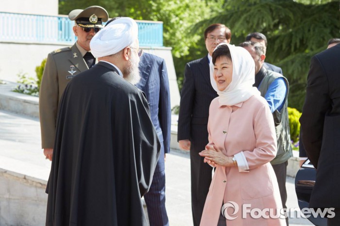 조 대변인은 "지난주 중국 북경에서 이란 대표도 참석해 개최된 아시아 교류 및 신뢰구축회의 CICA에서 북한의 핵, 그리고 미사일 도발에 대한 가장 강력한 표현의 규탄과 북한 비핵화 촉구 메시지에 이어서 이번에 전통적인 우방인 이란이 정상차원에서 발신된 메시지는 북한에 대해 더 없이 강력한 경고가 됐다"고 분석했다.박근혜 대통령은 2일 오전(이란시각) 사드아바드 좀후리궁에서 하산 로하니 이란 대통령과 정상회담을 개최했다. 2016.05.02. <사진출처=청와대>