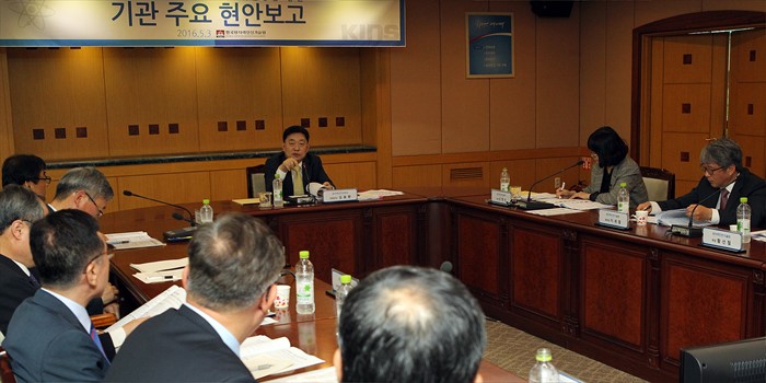 (대전=포커스뉴스) 김용환 원자력안전위원회 위원장이 3일 대전에 위치한 한국원자력안전기술원을 방문해 기관 주요현안을 보고 받고 있다. <사진제공=원자력안전위원회>