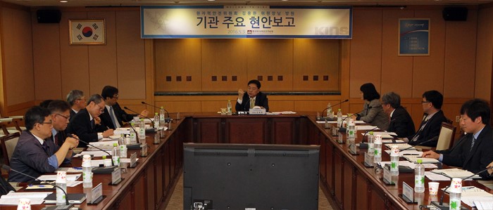 | △ 주요현안 보고 받는 김용환 원안위 위원장 |