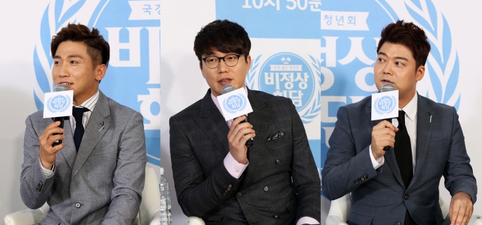 1회 때부터 '비정상회담'을 이끌어온 세 MC 유세윤, 성시경, 전현무의 감회는 남달랐다. 유세윤은 3일 서울 상암 JTBC에서 열린 JTBC '비정상회담' 100회 기념 기자간담회에서 "10회도 감사하다는 마음으로 자축했는데 100회가 됐다. 소중하고 뜻깊은 시간이었다"고 말했다.