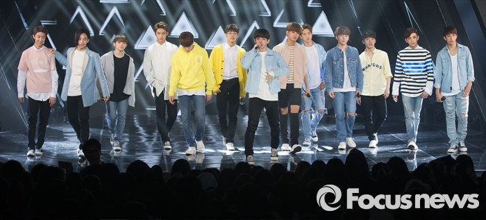 (서울=포커스뉴스) 3일 오후 서울 마포구 SBS 프리즘 타워에서 열린 SBS MTV 생방송 더쇼에 참여한 아이돌 그룹 세븐틴의 멤버들이 무대를 선보이고 있다.