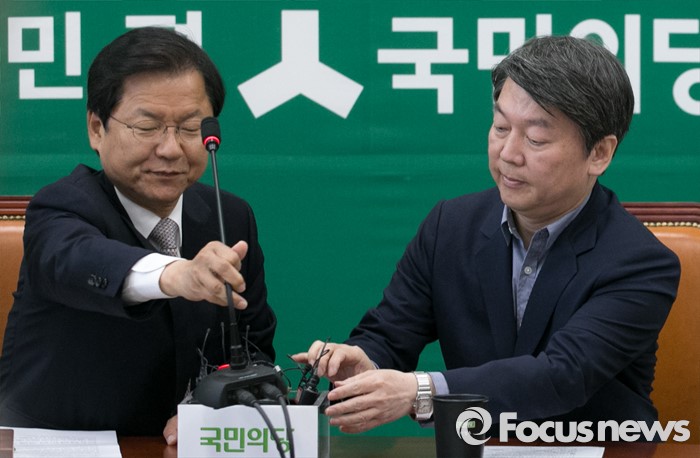 (서울=포커스뉴스) 안철수(오른쪽) 국민의당 상임공동대표가 4일 오전 서울 여의도 국회에서 열린 최고위원회의에 참석해 모두발언을 마친 뒤 천정배 공동대표에게 마이크를 넘겨주고 있다.