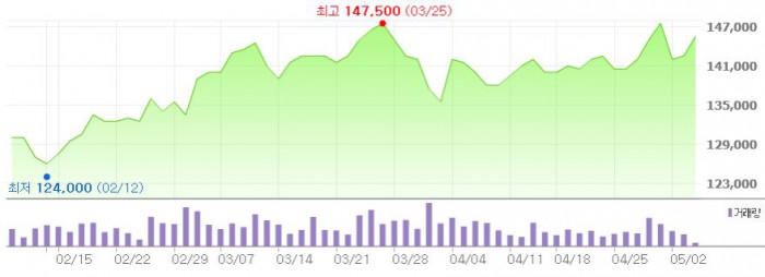 이에 따라 현대백화점에 대한 목표주가를 16만원에서 17만원으로 상향 조정했다.최근 3개월간 현대백화점 주가 추이 <그래픽출처=네이버>