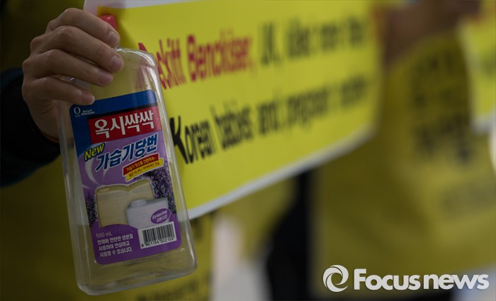(인천공항=포커스뉴스) 4일 오전 인천국제공항 출국장에서 가습기 살균제 피해자 가족 모임과 환경보건시민센터 관계자들이 옥시레킷벤키저 영국 본사에 항의하기 위해 출국하기 전 기자회견을 하고 있다. 이들은 영국 런던에서 열리는 옥시레킷벤키저의 연례주주총회를 방문할 예정이다.