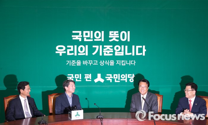 (서울=포커스뉴스) 새누리당 신임 원내지도부가 4일 오전 서울 여의도 국회에서 국민의당 지도부를 예방, 면담을 하고 있다. 오른쪽부터 김광림 새누리당 신임 정책위의장, 정진석 신임 원내대표, 안철수 국민의당 상임공동대표, 천정배 공동대표.