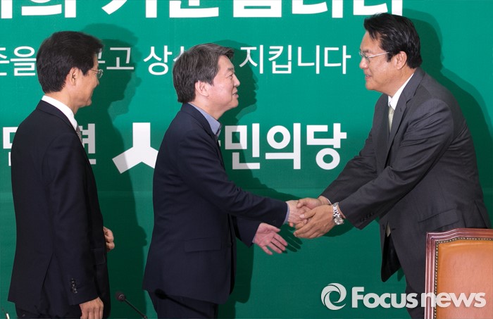 (서울=포커스뉴스) 정진석(오른쪽) 새누리당 신임 원내대표가 4일 오전 서울 여의도 국회에서 안철수(가운데) 국민의당 상임공동대표와 천정배 공동대표를 예방, 인사하고 있다.