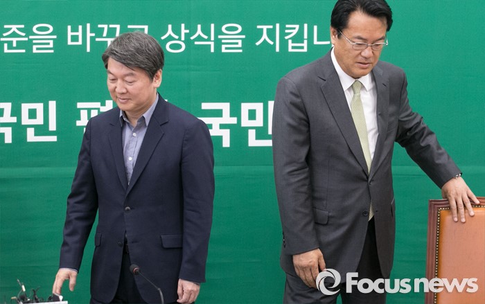(서울=포커스뉴스) 정진석(오른쪽) 새누리당 신임 원내대표가 4일 오전 서울 여의도 국회에서 안철수 국민의당 상임공동대표를 예방, 자리에 앉고 있다.