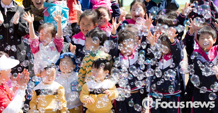 (서울=포커스뉴스) 어린이날을 하루 앞둔 4일 오전 서울 마포구 월드컵공원 난지잔디광장에서 2016 마포어린이축제에 참가한 어린이들이 버블쇼를 보며 즐거운 시간을 보내고 있다.