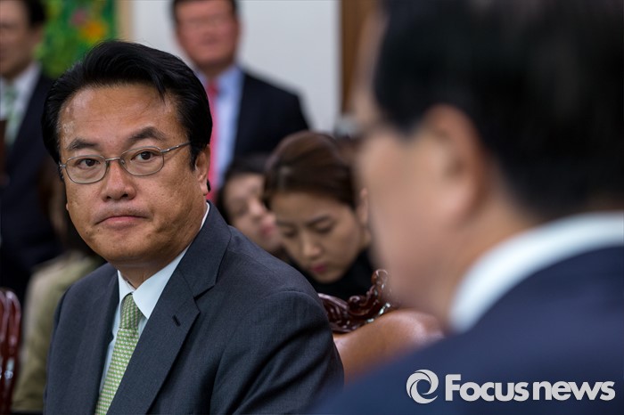 (서울=포커스뉴스) 정진석(왼쪽) 새누리당 신임 원내대표가 4일 오전 서울 여의도 국회에서 정의화 국회의장을 예방 하고 있다.