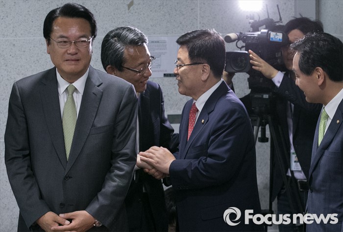 | △ 인사하는 새누리당, 국민의당 정책위의장 |