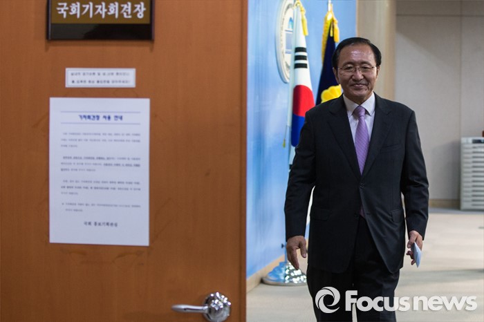 (서울=포커스뉴스) 노회찬 정의당 신임 원내대표가 4일 오전 서울 여의도 국회에서 원내대표 당선 기자회견을 마친 뒤 정론관을 나서고 있다.
