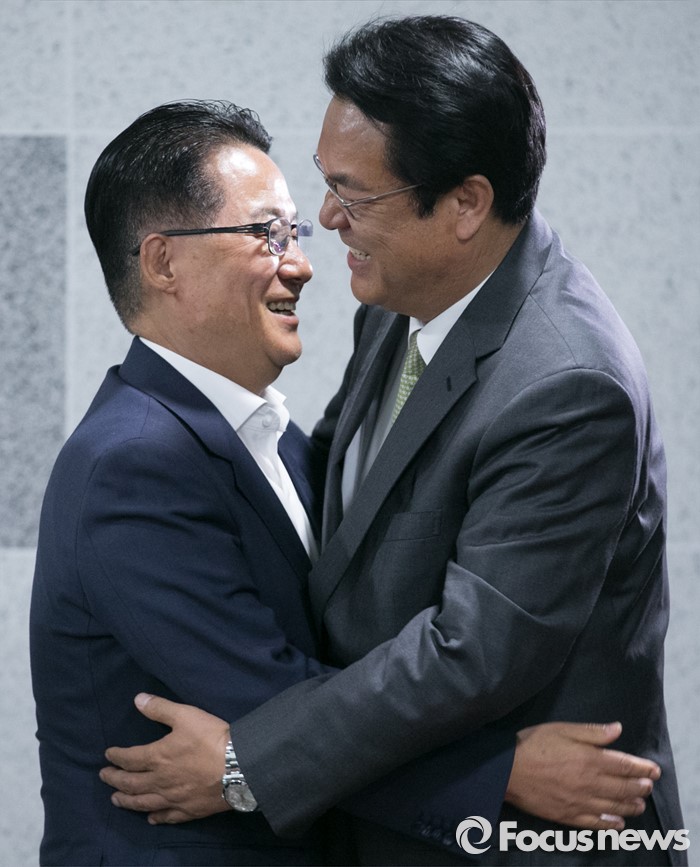 | △ 정진석-박지원, 포옹으로 인사 |