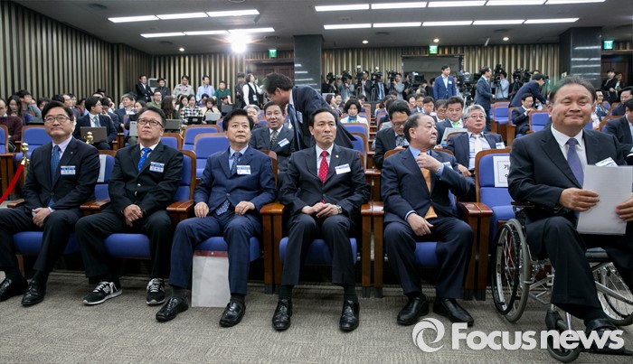 (서울=포커스뉴스) 4일 오후 서울 여의도 국회에서 열린 더불어민주당 20대 국회 1기 원내대표 선출을 위한 당선자 총회에 참석한 원내대표 후보들이 선거를 기다리고 있다. 왼쪽부터 우원식, 민병두, 노웅래, 우상호, 강창일, 이상민 후보.