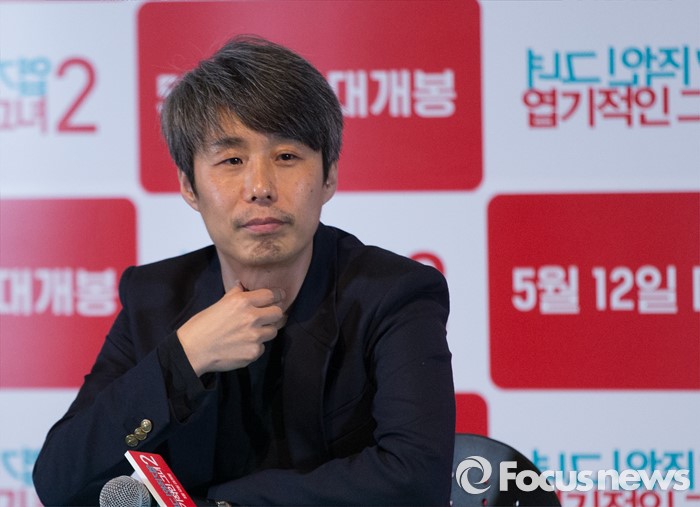 (서울=포커스뉴스) 4일 오후 서울 광진구 롯데시네마 건대입구점에서 열린 영화 '엽기적인 그녀2' 언론시사회에 참석한 조근식 감독이 취재진에게 질문을 받고 있다 .
