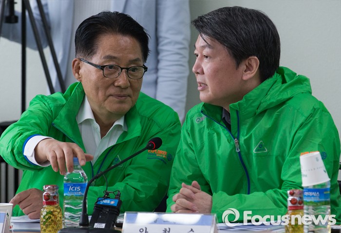 (인천=포커스뉴스) 안철수(오른쪽) 국민의당 상임공동대표와 박지원 원내대표가 4일 오후 인천 남동구 (주)서울화장품 인천공장에서 열린 국민의당 정책역량 강화 집중 워크샵'중소기업 대표 및 근로자와의 간담회'에 참석해 대화를 나누고 있다.