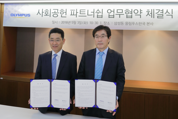올림푸스한국과 열린의사회는 지난 3일 오전 서울 강남구 올림푸스한국 서울사옥에서 업무협약(MOU)을 체결했다. 이번 업무협약은 의료 소외계층의 건강 증진과 각종 질환의 예방 및 치료를 돕기 위해 마련됐다.