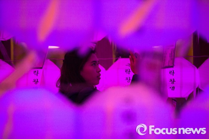 (서울=포커스뉴스) 4일 오후 서울 종로구 조계사에서 연등 점등식이 열리고 있다.